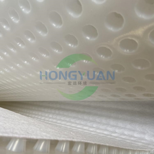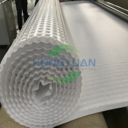 产品规格:板材厚度为0.8mm-2.0mm,凸台高度一般为8mm/15mm/20mm,产品幅宽为2m-3m,板材材质有HDPE/EVA等,复合层为无纺土工织物,长度根据用户要求。