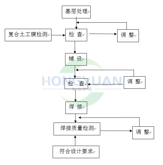 复合土工膜的施工方法及流程:基层处理—土工合成材料铺放—搭接处理—检查验收—回填!